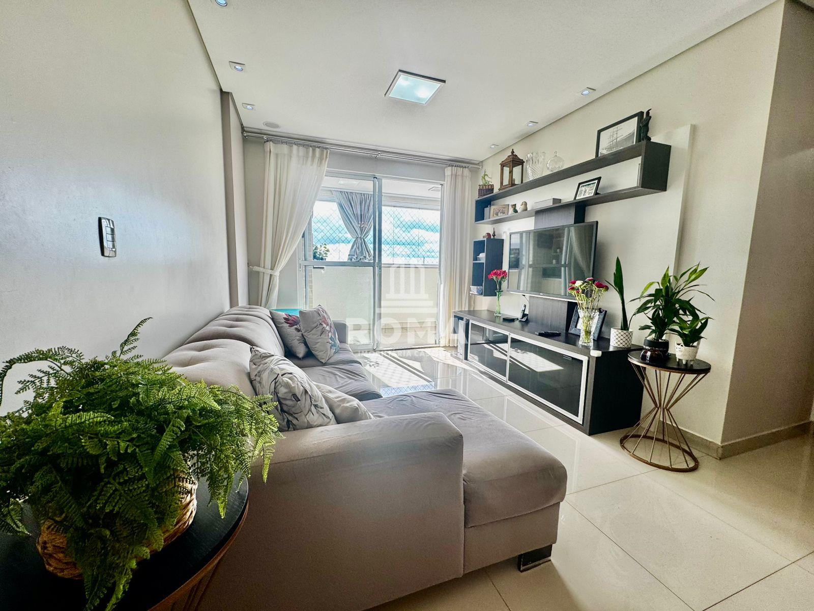 A sala ampla integra dois ambientes e conecta-se à sacada com churrasqueira, perfeita para momentos de convívio.