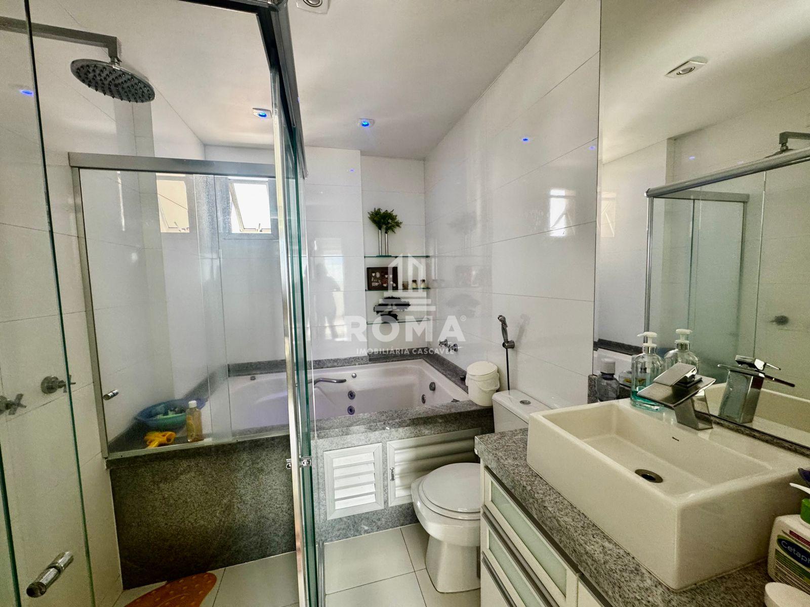 São dois dormitórios, incluindo uma suíte master com hidro, e um escritório, ar-condicionado e mobiliário completo.