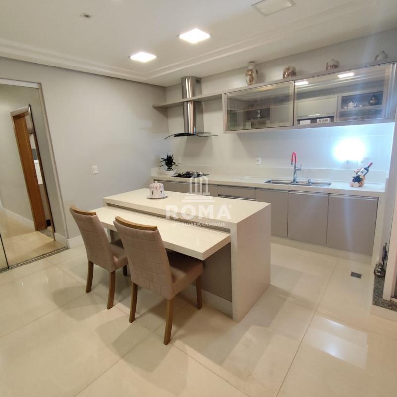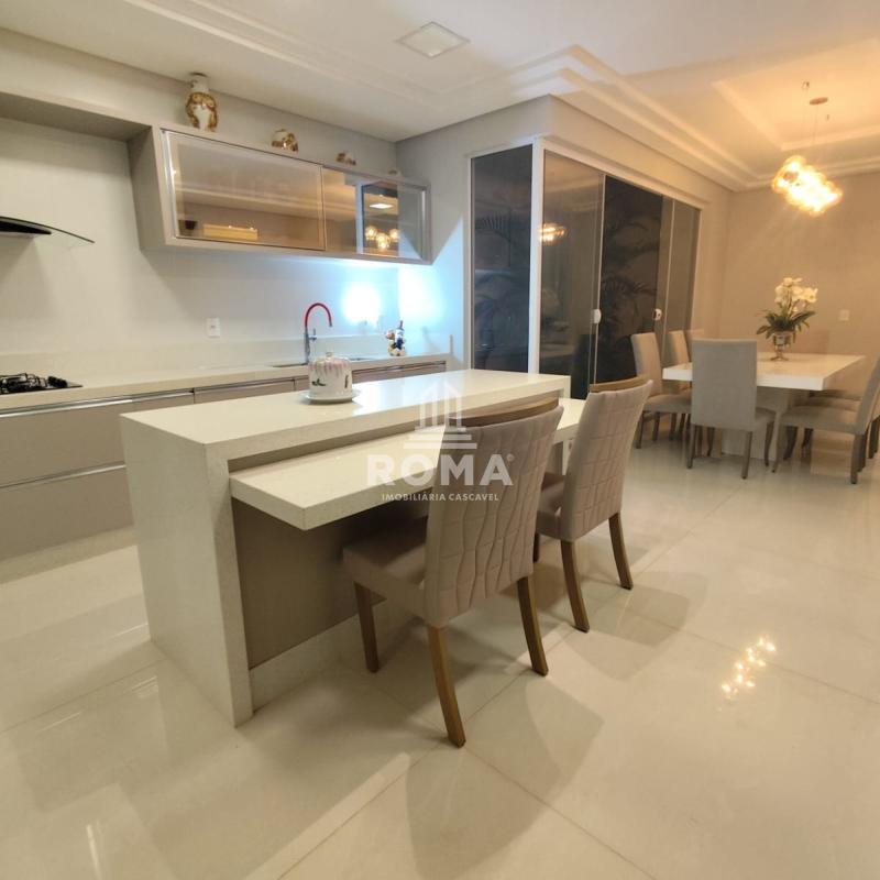 Cozinha planejada com móveis sob medida e integração perfeita aos ambientes sociais.