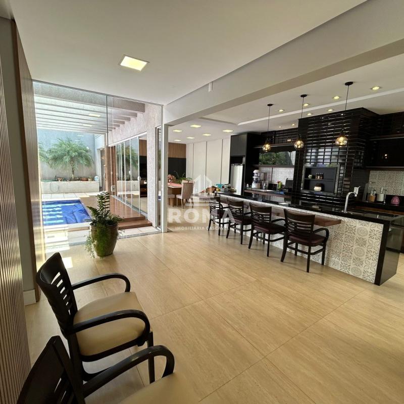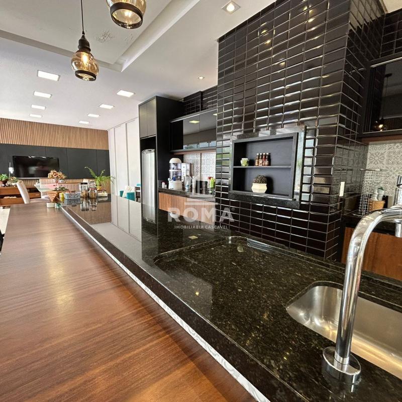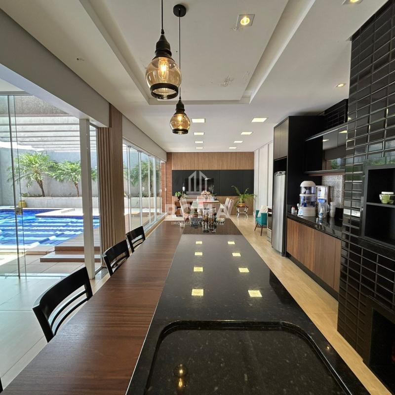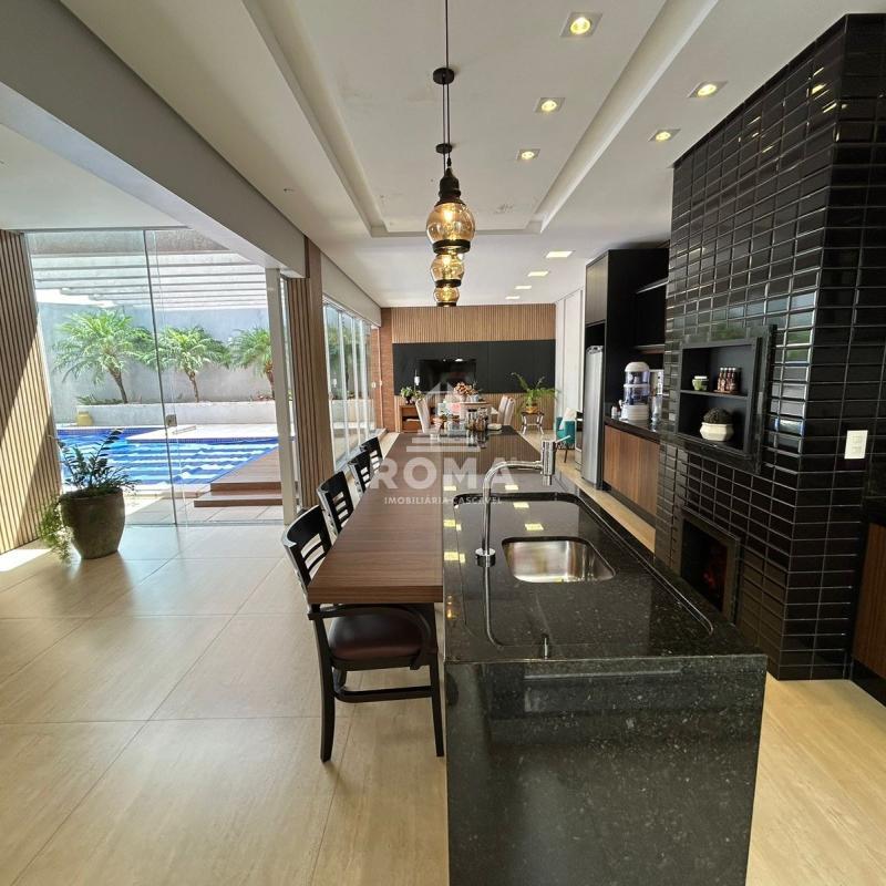 Espaço gourmet completo, com churrasqueira, sala de TV e cozinha auxiliar.