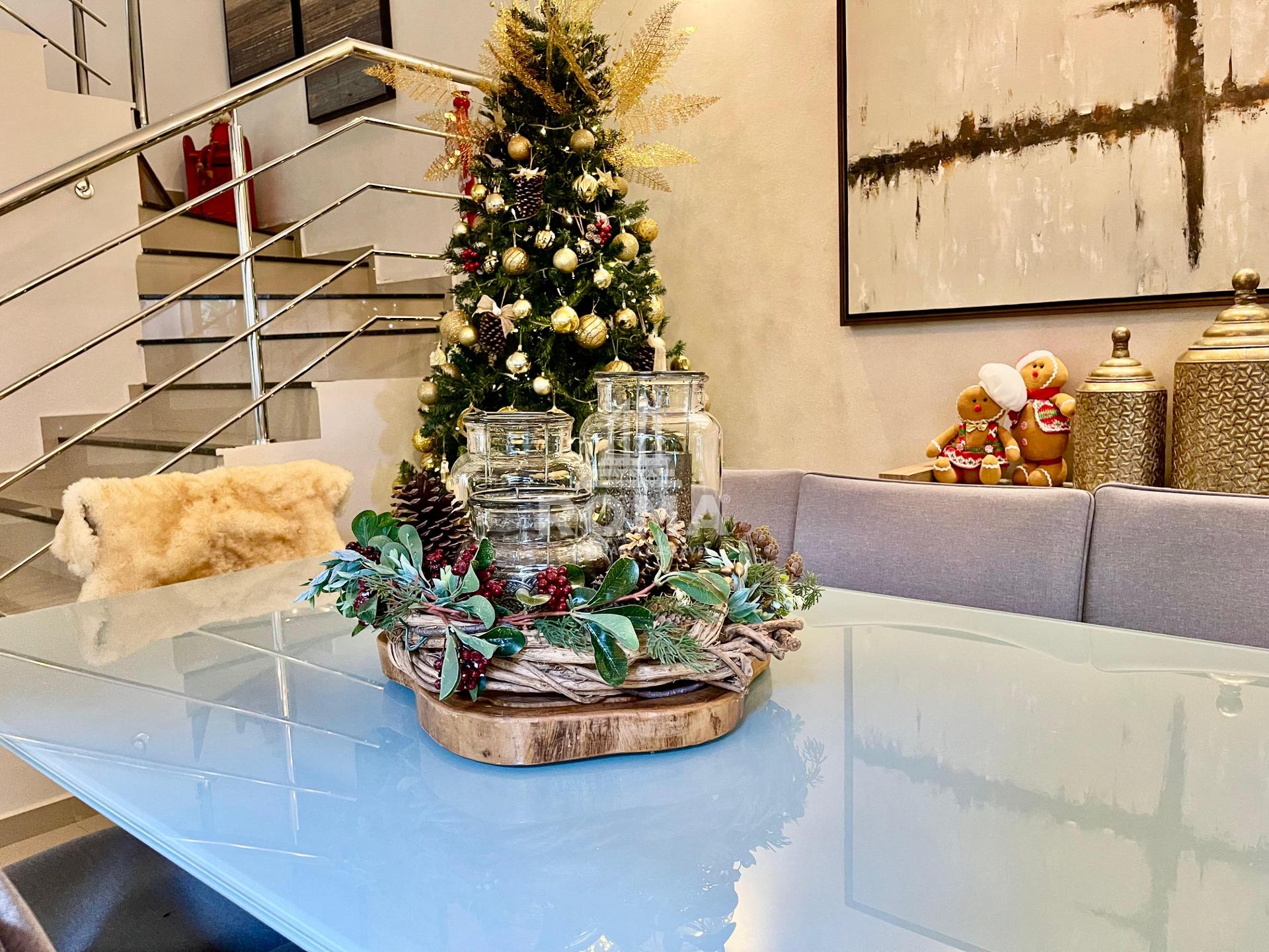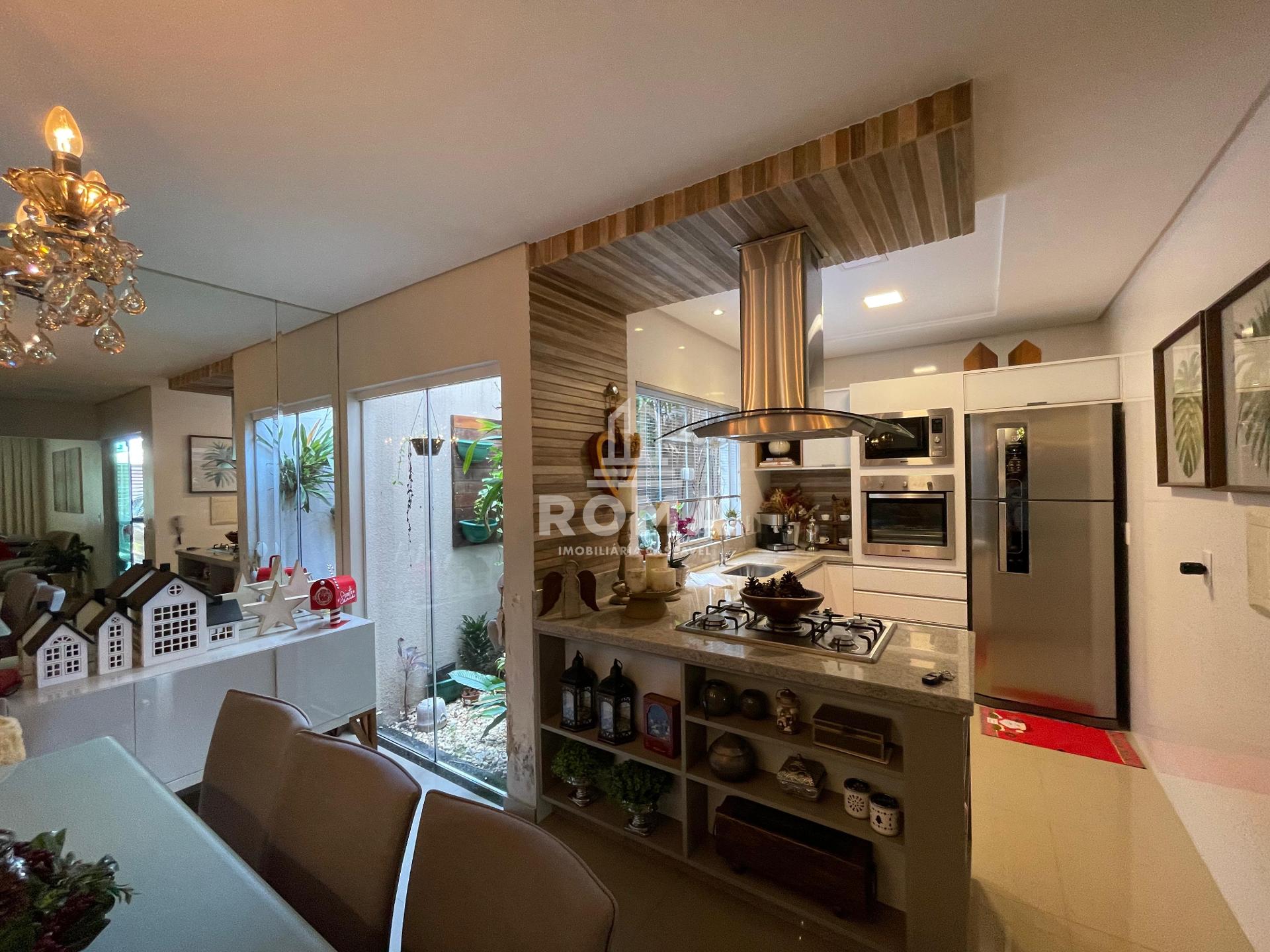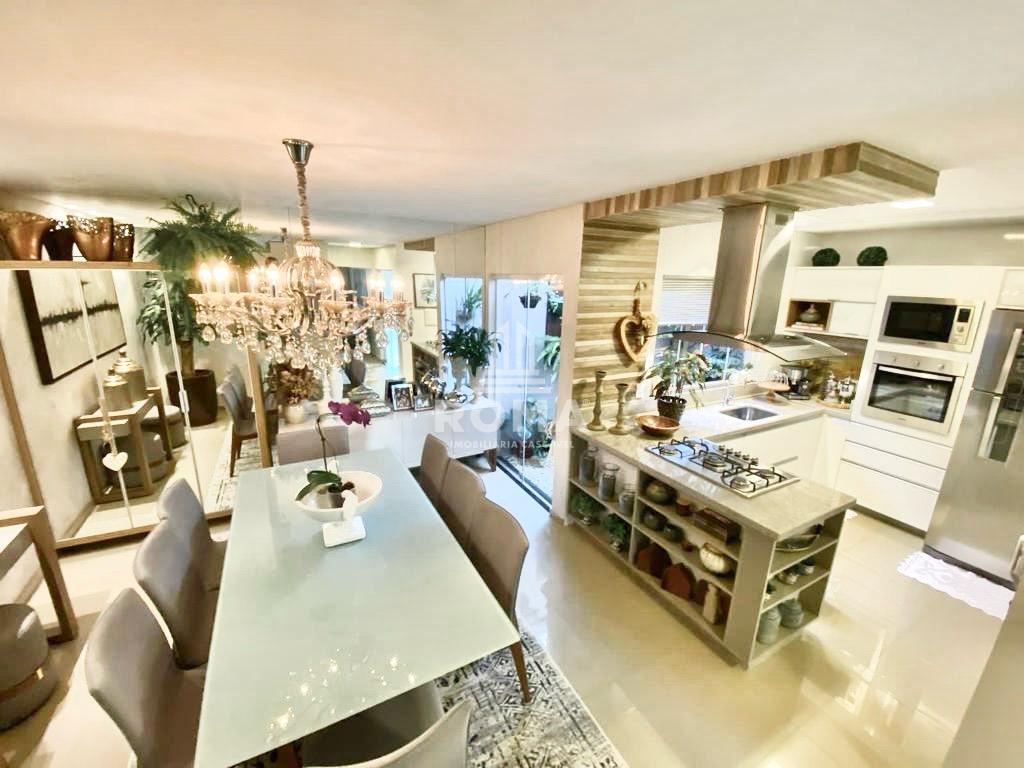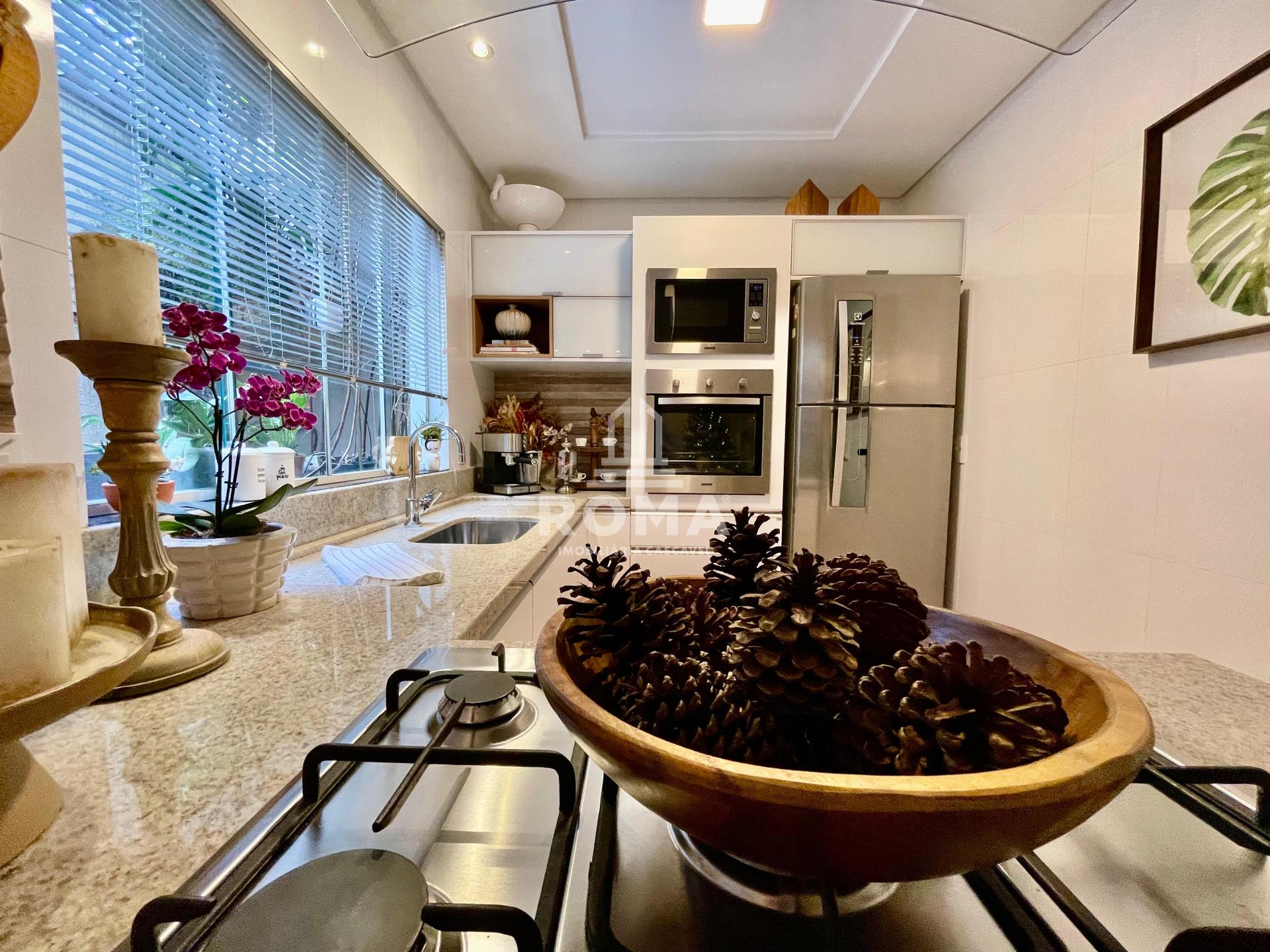 No pavimento térreo, a sala de TV e a sala de jantar se conectam harmoniosamente a uma cozinha planejada, enquanto um elegante lavabo e um jardim de inverno trazem sofisticação e charme.