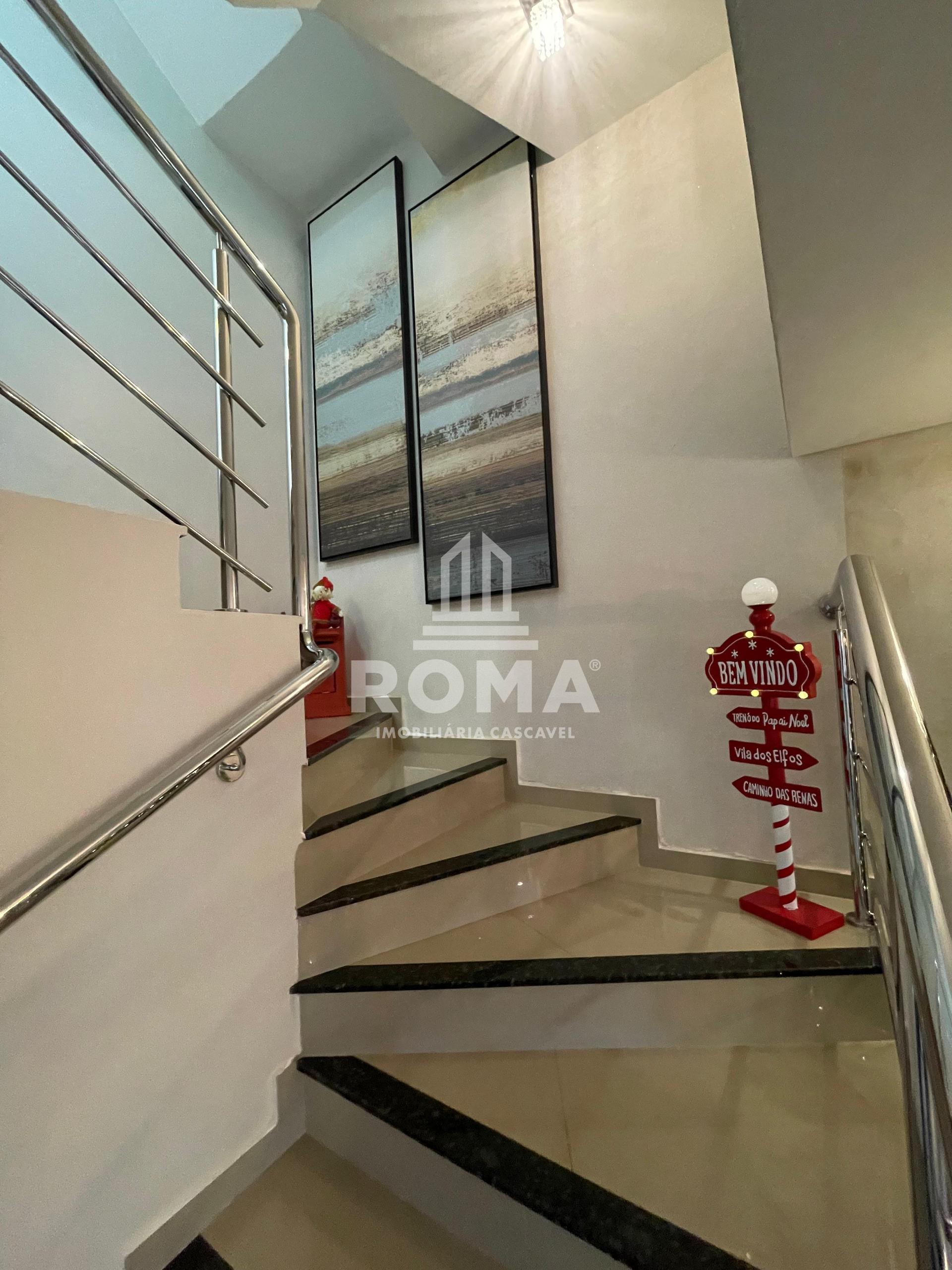 No segundo andar, a suíte master com closet e sacada proporciona um refúgio tranquilo, acompanhado por dois quartos e um banheiro social.