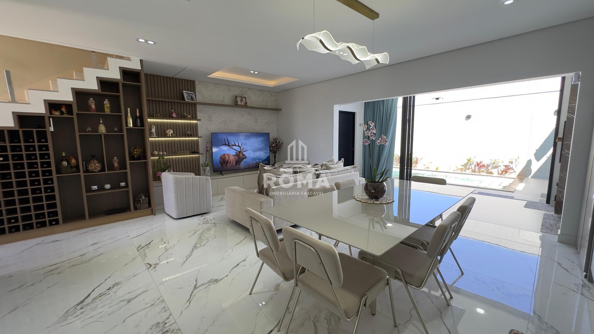 Localizado no Recanto Tropical, dentro do Loteamento Paraíso Tropical, este sobrado impressiona pelo projeto moderno, pelo alto padrão de acabamento e pela localização em uma das regiões que mais crescem em Cascavel.