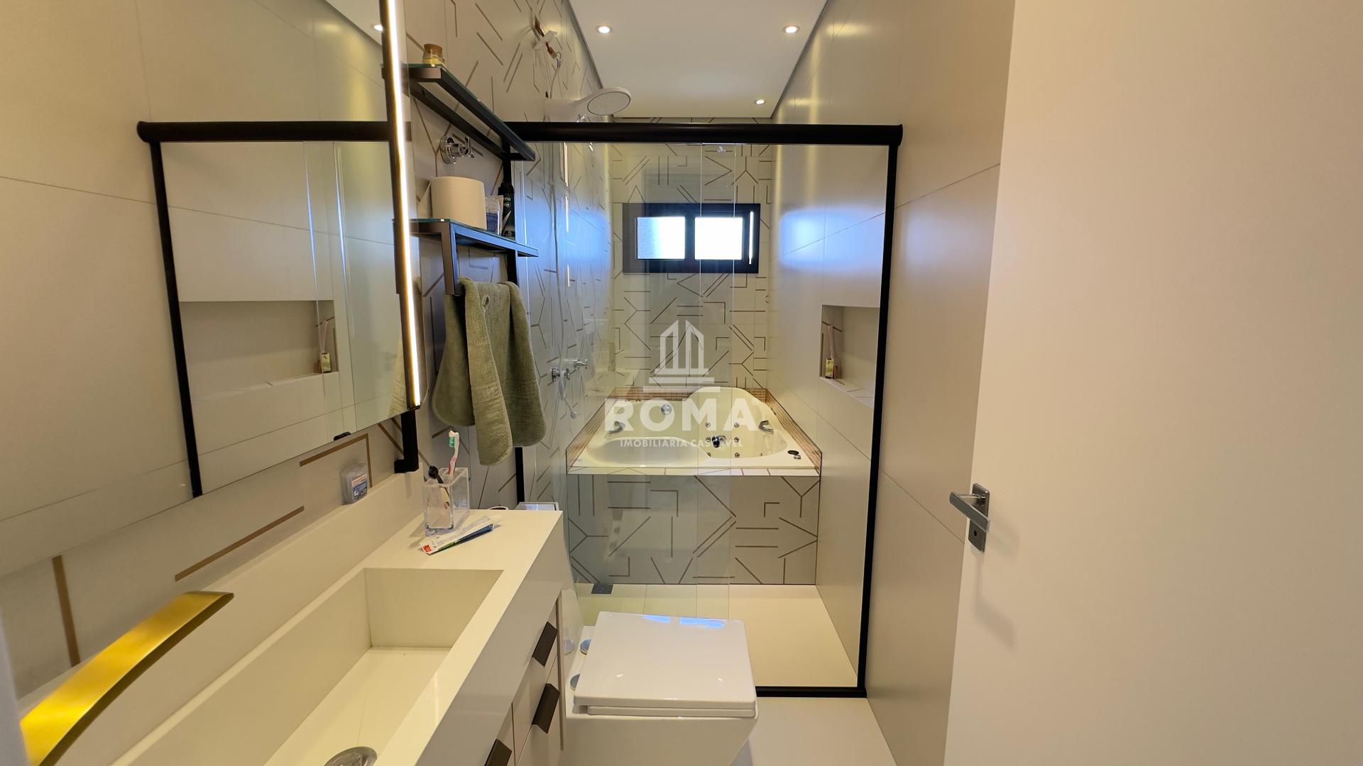 Na área íntima, o destaque fica por conta da suíte master, que oferece um closet generoso e uma banheira ideal para momentos de relaxamento. Além dela, o imóvel dispõe de outra suíte e demi-suítes bem distribuídas, garantindo privacidade e conforto para todos.